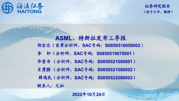 【海通证券】【20221024】ASML、特斯拉发布三季报-10页 行业研究