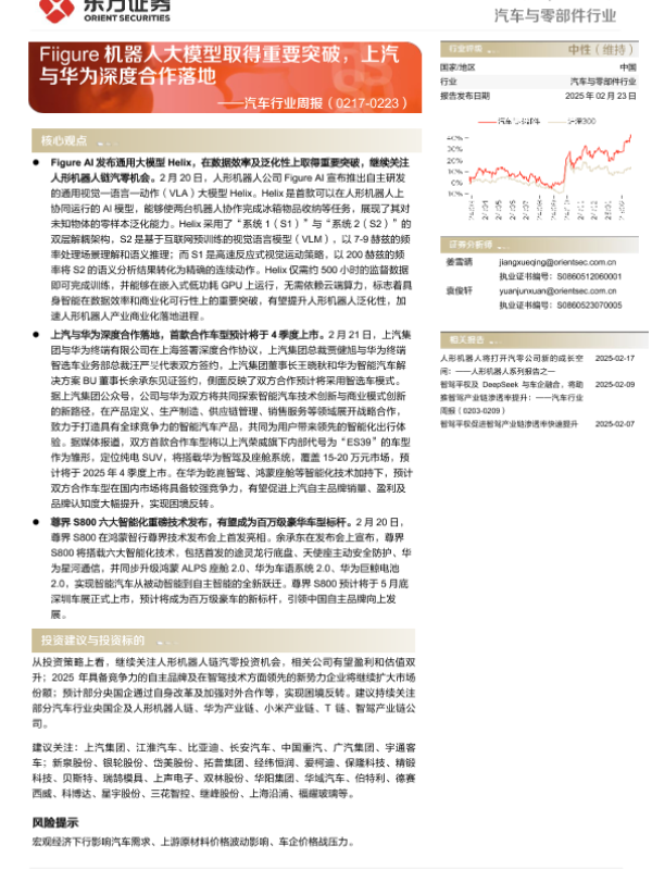 【东方证券】【20250223】20250223-东方证券-汽车行业周报:Fiigure机器人大模型取得重要突破,上汽与华为深度合作落地-16页 行业研究