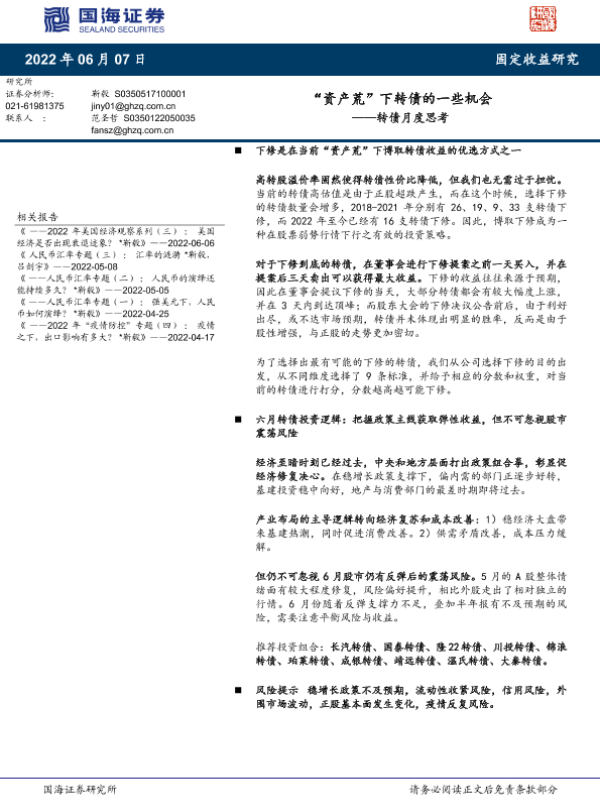 【国海证券】【20220607】转债月度思考:“资产荒”下转债的一些机会-17页 行业研究