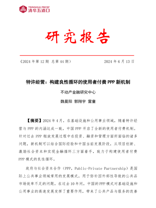 【清华五道口】【20240613】2024特许经营:构建良性循环的使用者付费PPP新机制研究报告-18页 行业研究