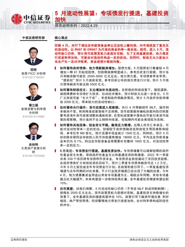【中信证券】【20220429】债市启明系列:5月流动性展望,专项债发行提速,基建投资加快-38页 行业研究