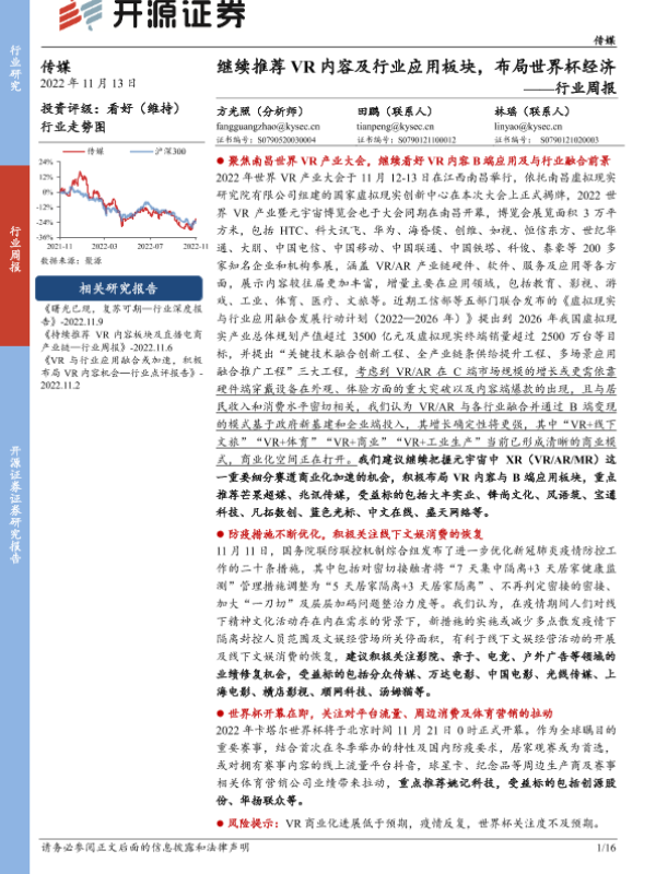 【开源证券】【20221113】传媒行业周报:继续推荐VR内容及行业应用板块,布局世界杯经济-16页 行业研究