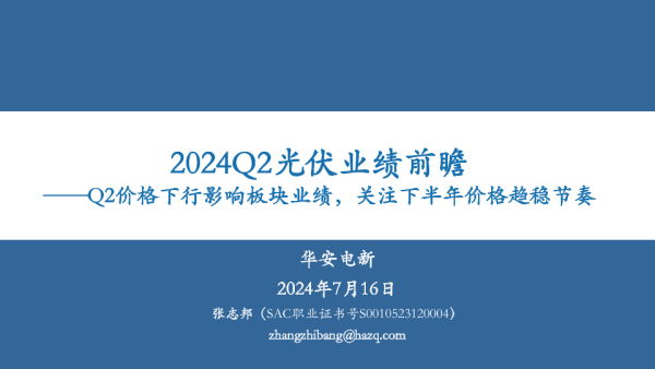 【华安证券】【20240716】2024Q2光伏业绩前瞻:Q2价格下行影响板块业绩,关注下半年价格趋稳节奏-13页 行业研究