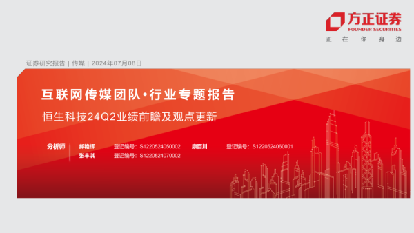 【方正证券】【20240708】互联网传媒行业专题报告:恒生科技24Q2业绩前瞻及观点更新-25页 行业研究