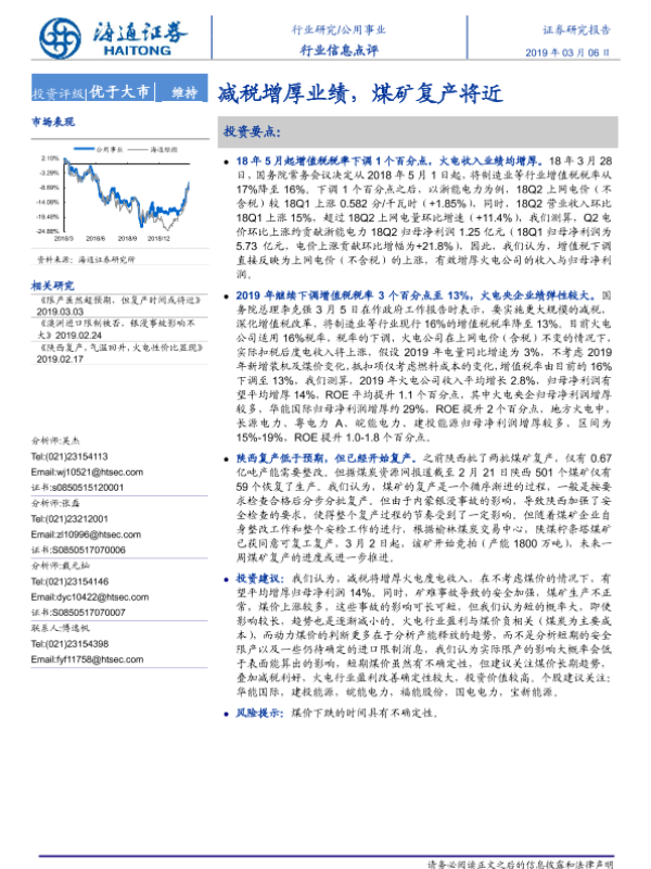 【海通证券】【20190306】公用事业行业信息点评:减税增厚业绩,煤矿复产将近-2页 行业研究