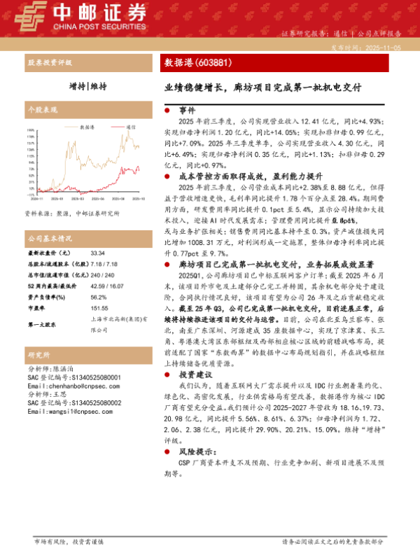 【中邮证券】【2025】业绩稳健增长,廊坊项目完成第一批机电交付-5页 证券期货研究报告