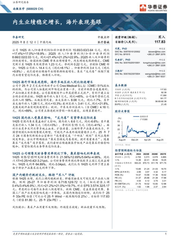 【华泰证券】【20250812】南微医学-内生业绩稳定增长,海外表现亮眼-6页 证券期货研究报告
