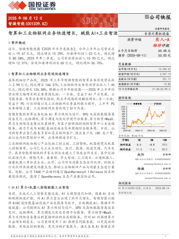 【国投证券】【20250812】智算和工业物联网业务快速增长,赋能AI+工业智造-5页 证券期货研究报告