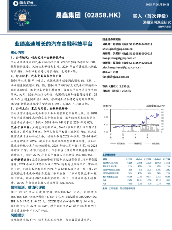 【国金证券】【20250630】易鑫集团业绩高速增长的汽车金融科技平台-20页 公司研究