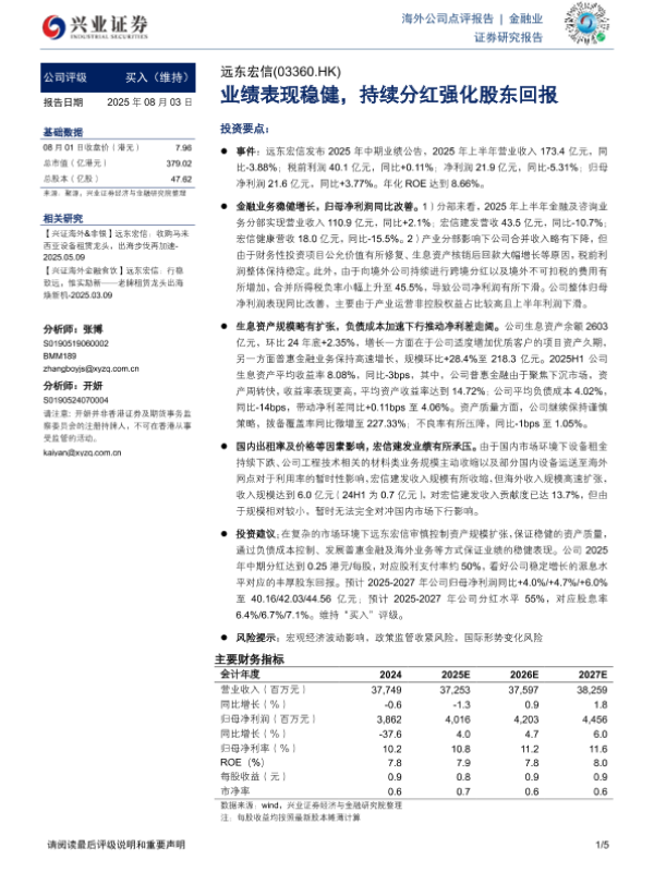 【兴业证券】【20250803】远东宏信 业绩表现稳健, 持续分红强化股东回报-5页 公司研究