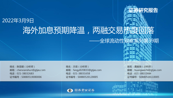 【国泰君安证券】【20220310】全球流动性观察系列第39期:海外加息预期降温,两融交易热度回落-52页 行业研究