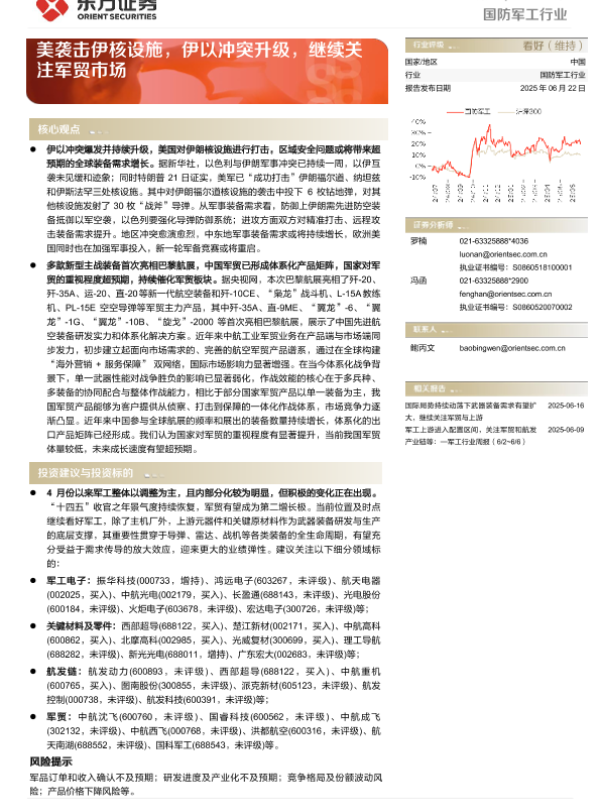 【东方证券】【20250622】国防军工行业行业周报——美袭击伊核设施,伊以冲突升级,继续关注军贸市场-12页 行业研究