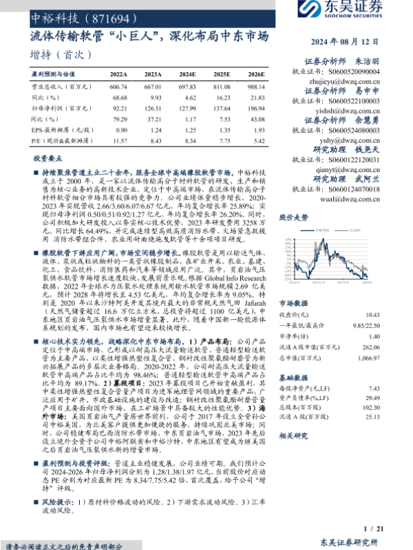 【东吴证券】【20240812】中裕科技(871694)流体传输软管“小巨人”,深化布局中东市场-21页 行业研究