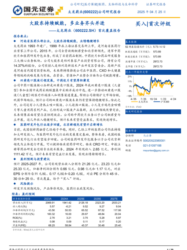 【国元证券】【20250425】太龙药业首次覆盖报告:大股东持续赋能,多业务齐头并进-20页 公司研究