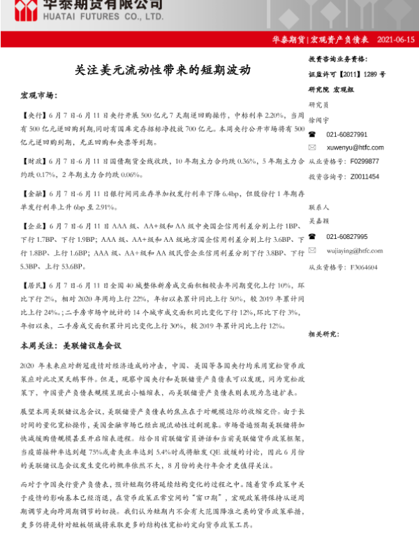 【华泰期货】【20210615】宏观资产负债表:关注美元流动性带来的短期波动-21页 行业研究