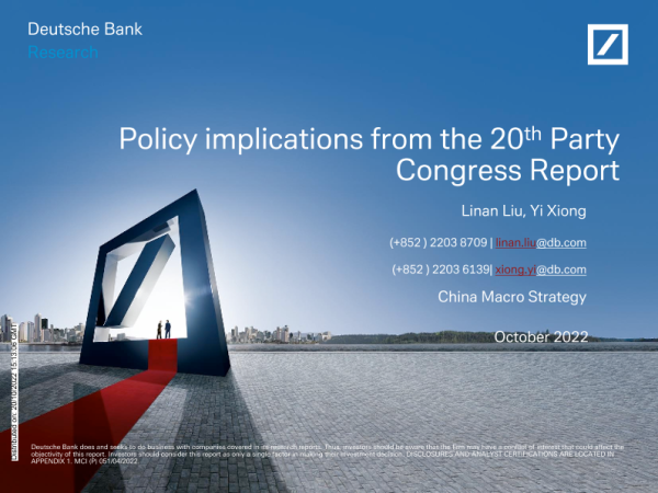 【Deutsche Bank Research】【20221020】20th Party Congress Report China Policy Implications-22页 行业研究