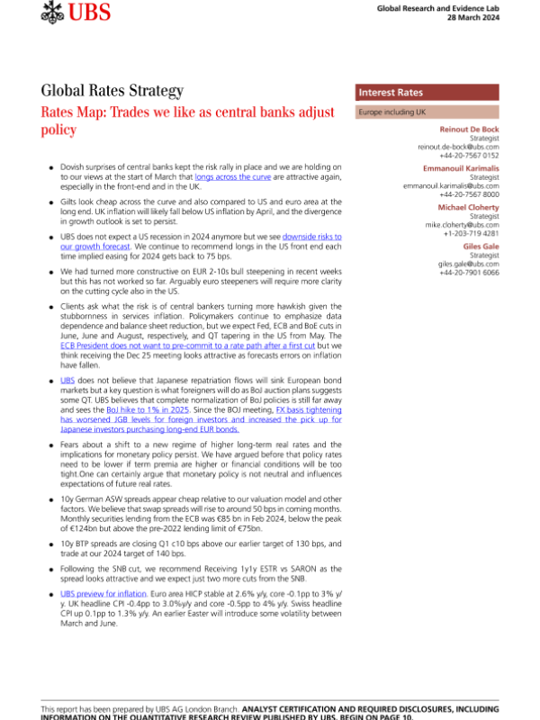 【UBS AG London Branch】【20240328】UBS Fixed Income-Global Rates Strategy Rates Map Trades we like as central banks adjust policy-14页 行业研究