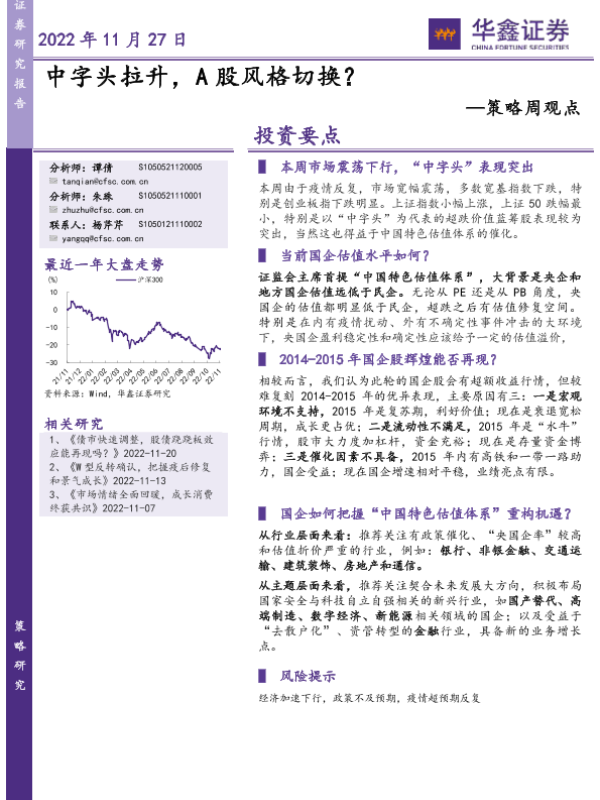 【华鑫证券】【20221127】策略周观点:中字头拉升,A股风格切换?-20页 行业研究