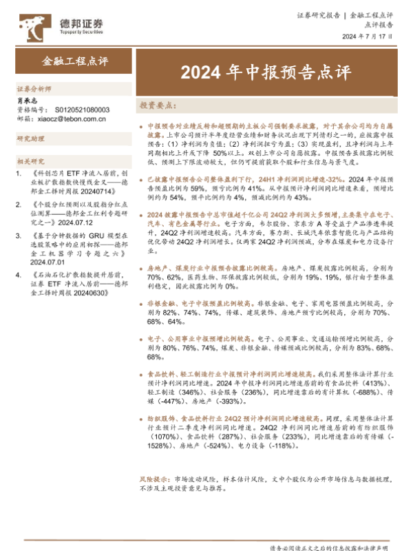 【德邦证券】【20240717】金融工程点评:2024年中报预告点评-12页 行业研究