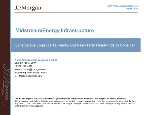 【J.P. Morgan】【202303】JPMorgan-Midstream Energy Infrastructure Constructive Logistics Tailwinds-37页 行业研究