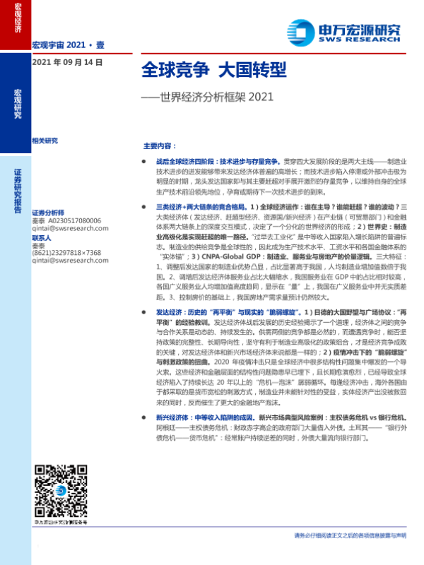 【申万宏源】【20210914】世界经济分析框架2021:全球竞争,大国转型-38页 行业研究