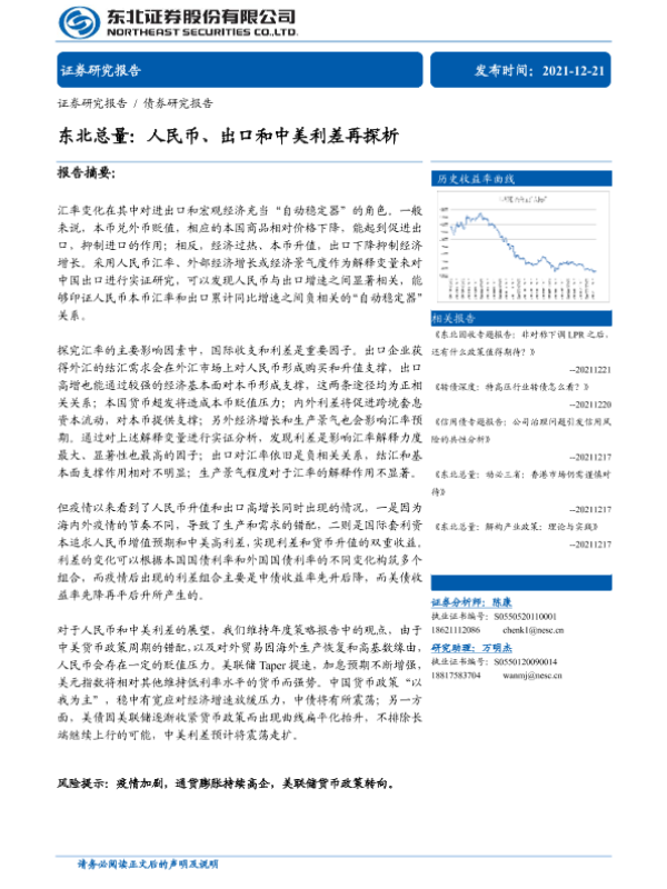 【东北证券】【20211221】东北总量:人民币、出口和中美利差再探析-29页 行业研究
