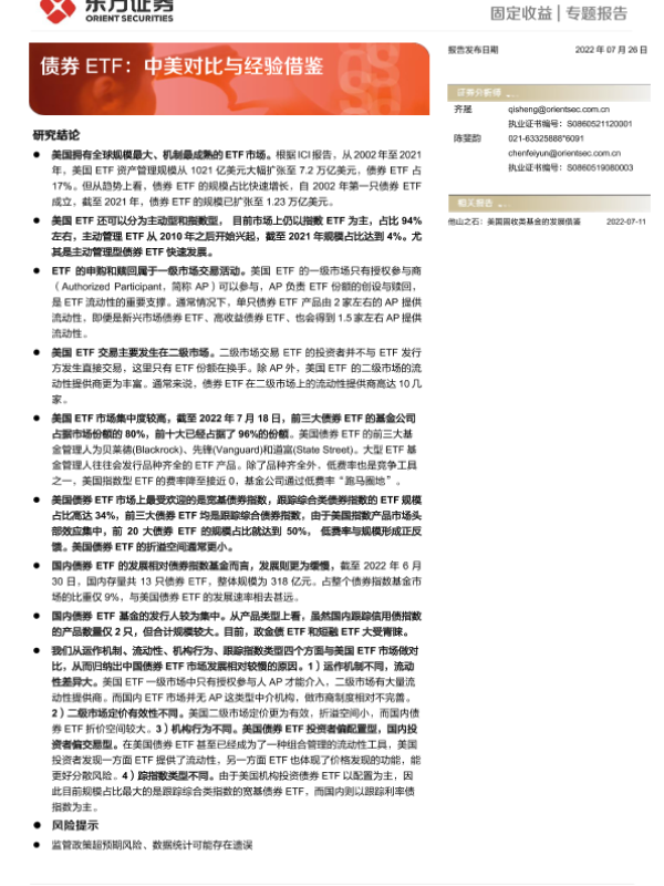【东方证券】【20220726】债券ETF:中美对比与经验借鉴-22页 行业研究