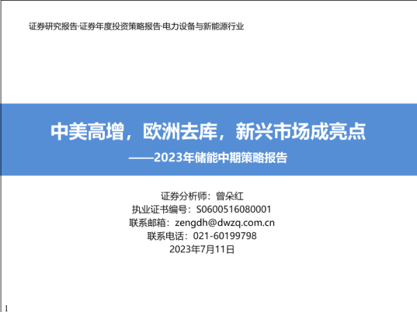 【东吴证券】【20230711】2023年储能中期策略报告:中美高增,欧洲去库,新兴市场成亮点-80页 行业研究