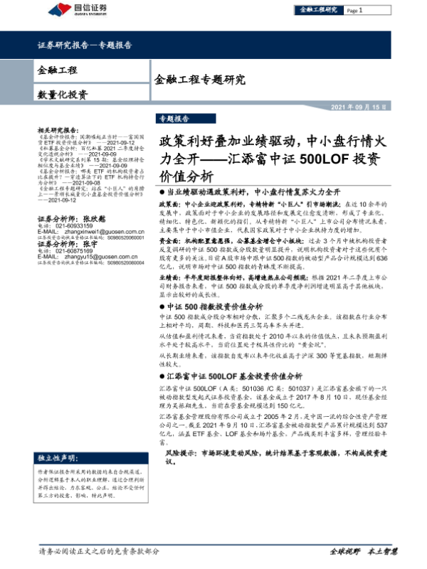 【国信证券】【20210915】金融工程专题研究:汇添富中证500LOF投资价值分析,政策利好叠加业绩驱动,中小盘行情火力全开-18页 行业研究