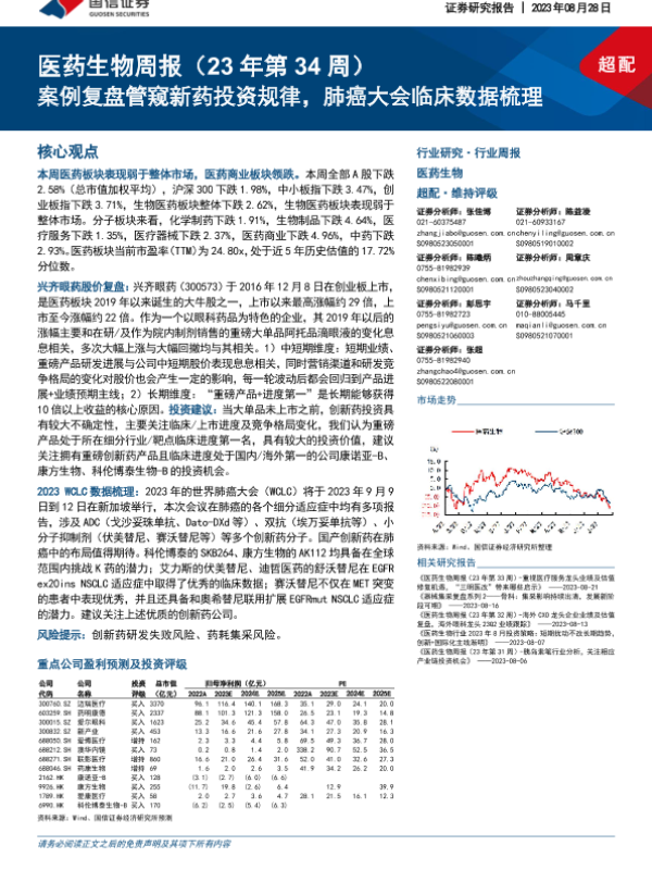 【国信证券】【20230828】医药生物周报(23年第34周):案例复盘管窥新药投资规律,肺癌大会临床数据梳理-22页 行业研究