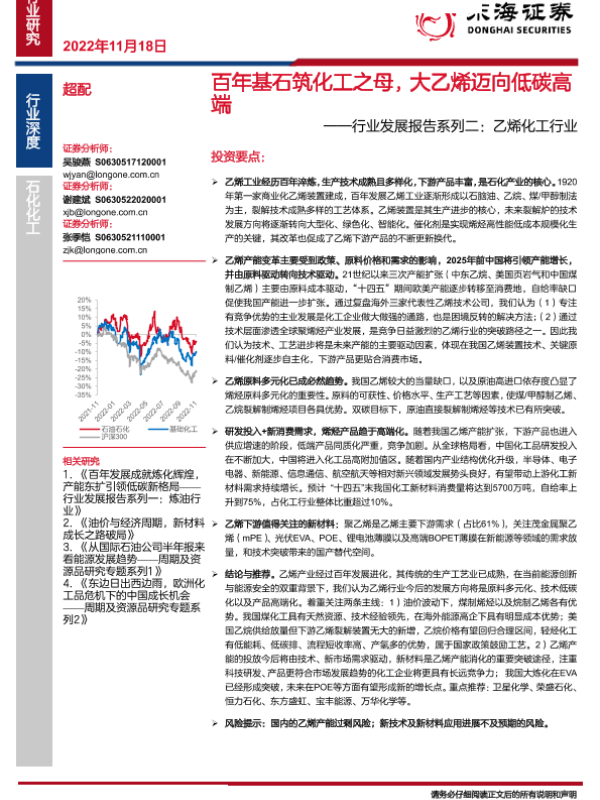 【东海证券】【20221118】百年基石筑化工之母,大乙烯迈向低碳高端——行业収展报告系列事:乙烯化工行业-40页 行业研究