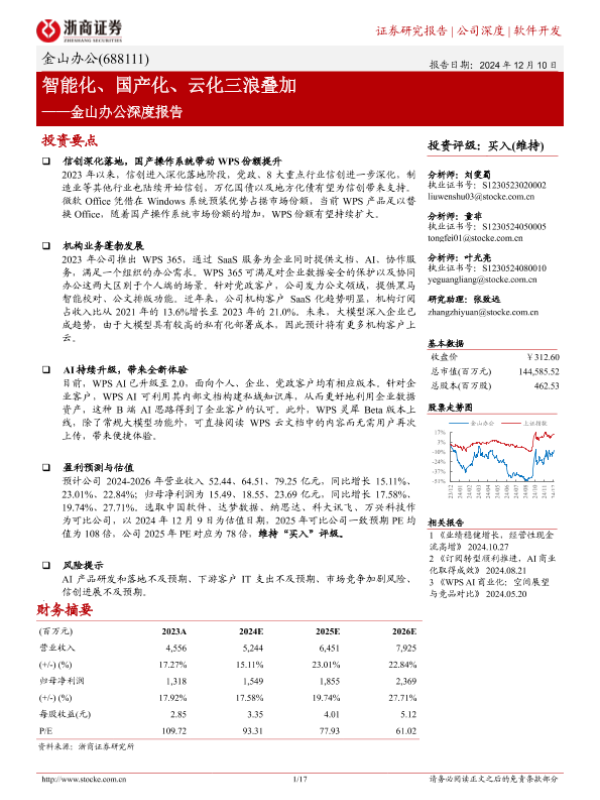 【浙商证券】【20241210】金山办公深度报告:智能化、国产化、云化三浪叠加-17页 行业研究