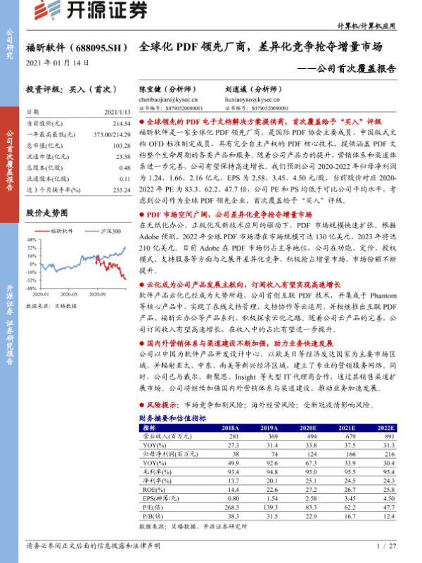 【开源证券】【20210114】福昕软件-688095.SH-公司首次覆盖报告:全球化PDF领先厂商,差异化竞争抢夺增量市场-27页 公司研究