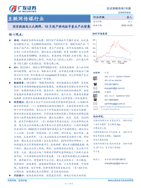 【广发证券】【20231029】互联网传媒行业投资策略周报:国家数据局正式揭牌,10月国产游戏版号重点产品密集-21页 行业研究