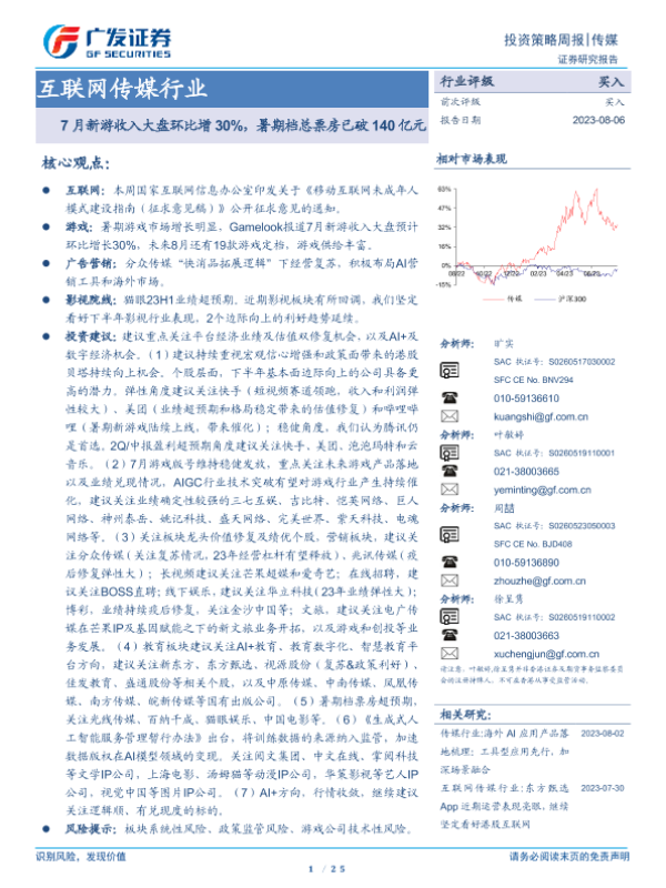 【广发证券】【20230806】7月新游收入大盘环比增30%,暑期档总票房已破140亿元-25页 行业研究