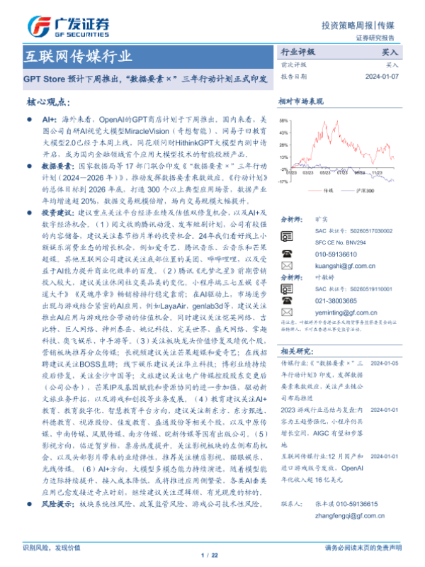 【广发证券】【20240107】互联网传媒行业投资策略周报:GPT Store预计下周推出,“数据要素×”三年行动计划正式印发-22页 行业研究