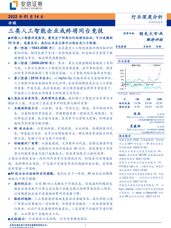 【安信证券】【20220114】传媒行业:三类人工智能企业或终将同台竞技-32页 行业研究
