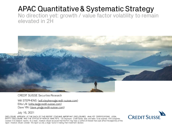 【Credit Suisse】【20210716】瑞信-亚太地区量化策略-目前还没有方向:增长、价值因素波动率将在下半年继续上升-73页 行业研究