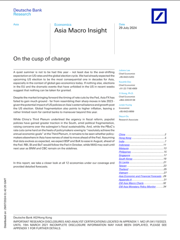 【Deutsche Bank Research】【20240729】Asia Macro Insight On the cusp of change-45页 行业研究