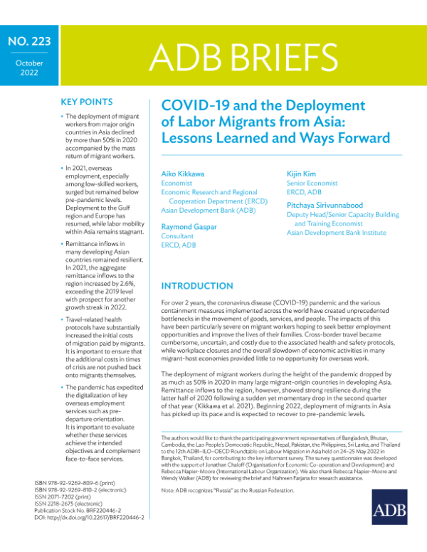 【Asian Development Bank(ADB)】【20221001】新冠肺炎与亚洲劳务移民的部署:经验教训和前进方向-10页 行业研究