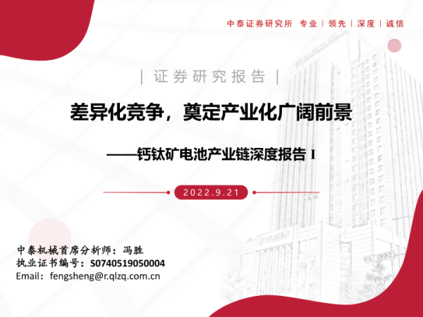 【中泰证券】【20220921】机械行业钙钛矿电池产业链深度报告I:差异化竞争,奠定产业化广阔前景-42页 行业研究