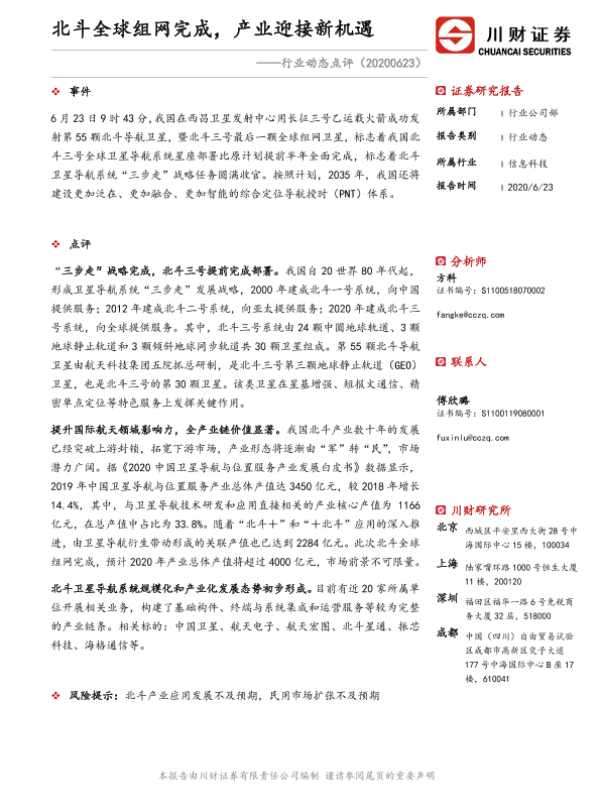 【川财证券】【20200623】信息科技行业动态点评:北斗全球组网完成,产业迎接新机遇-2页 证券期货研究报告