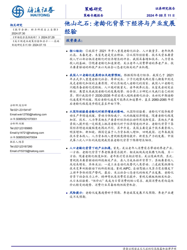 【海通证券】【20240811】他山之石,老龄化背景下经济与产业发展经验-21页 行业研究