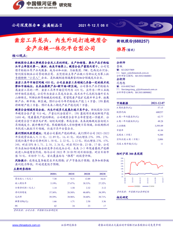 【银河证券】【20211208】新锐股份-凿岩工具龙头,内生外延打造硬质合金产业链一体化平台型公司-29页 行业研究