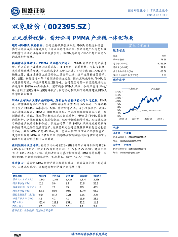 【国盛证券】【20191215】双象股份-立足原料优势,看好公司PMMA产业链一体化布局-23页 公司研究