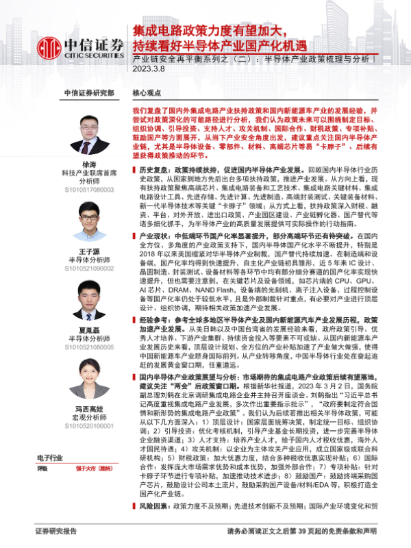 【中信证券】【20230308】子行业产业链安全再平衡系列之(二):半导体产业政策梳理与分析-40页 行业研究