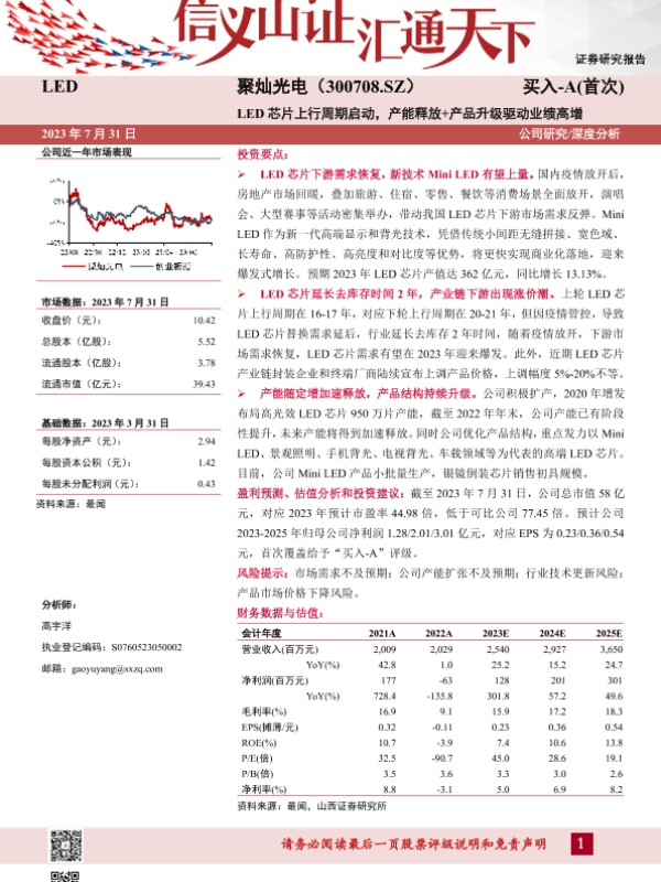【山西证券】【20230731】LED芯片上行周期启动,产能释放+产品升级驱动业绩高增-25页 公司研究