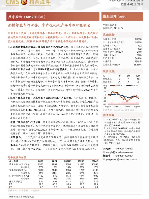 【海通证券】【20220829】深耕智能车灯业务,客户优化及产品升级双轮驱动-18页 公司研究