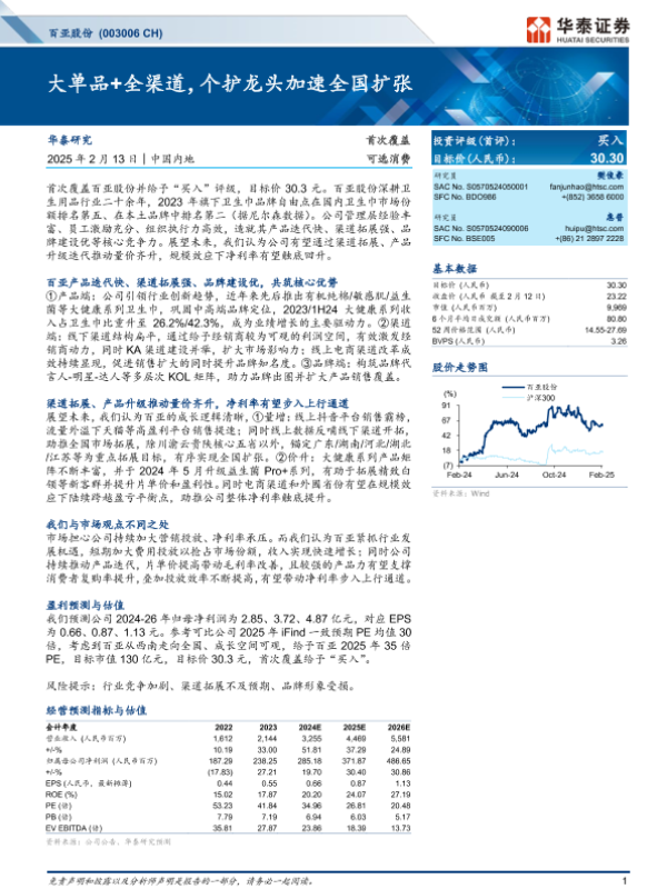 【华泰证券】【20250213】百亚股份(003006)大单品+全渠道,个护龙头加速全国扩张-30页 行业研究