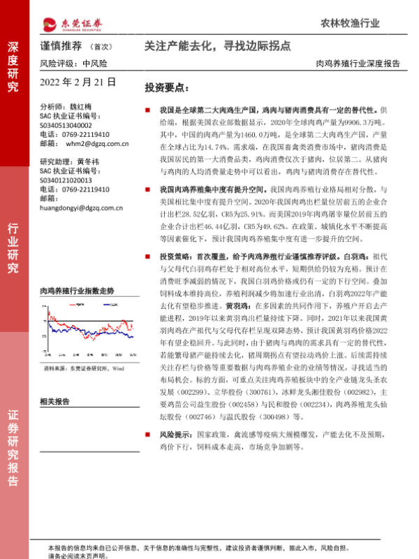 【东莞证券】【20220221】肉鸡养殖行业深度报告:关注产能去化,寻找边际拐点-34页 行业研究